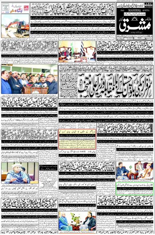 Daily Mashriq Quetta. 02-03-2024 – Daily Mashriq Newspaper Quetta