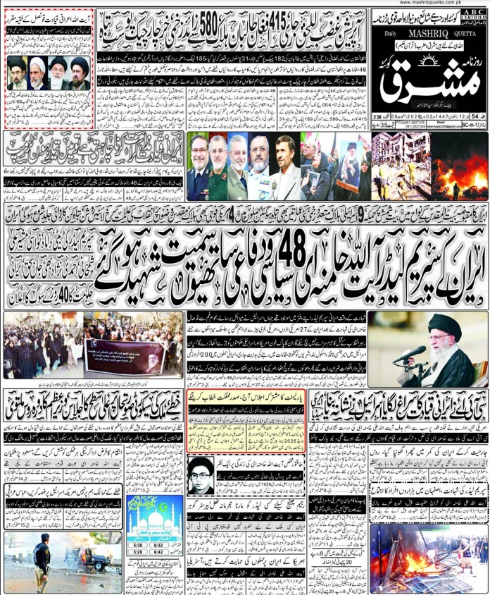 Daily Mashriq Quetta. 02-03-2026 – Daily Mashriq Newspaper Quetta