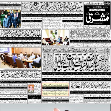 Daily Mashriq Quetta. 02-07-2025 On جولائی 2, 2025 Share Mashriq 30 Share FacebookTwitterGoogle+ReddItWhatsAppPinterestEmail