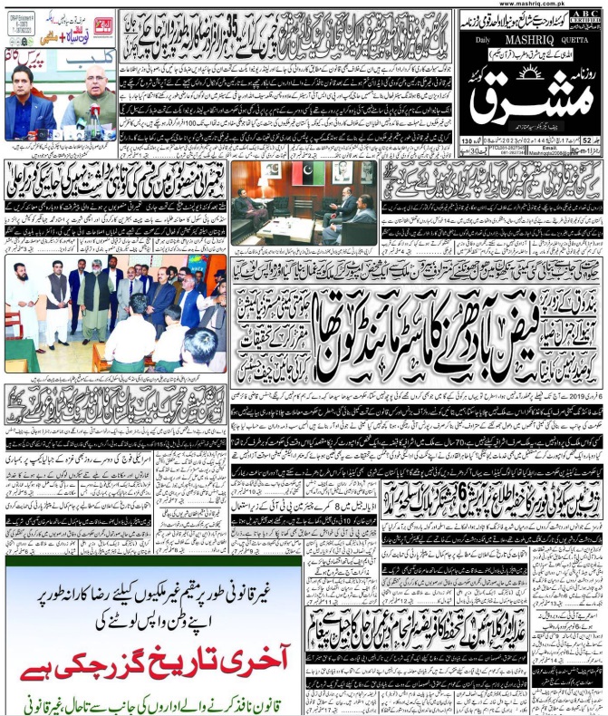 Daily Mashriq Quetta. 02-11-2023 On نومبر 2, 2023 Share Daily Mashirq 02-11-2023 Share FacebookTwitterGoogle+ReddItWhatsAppPinterestEmail