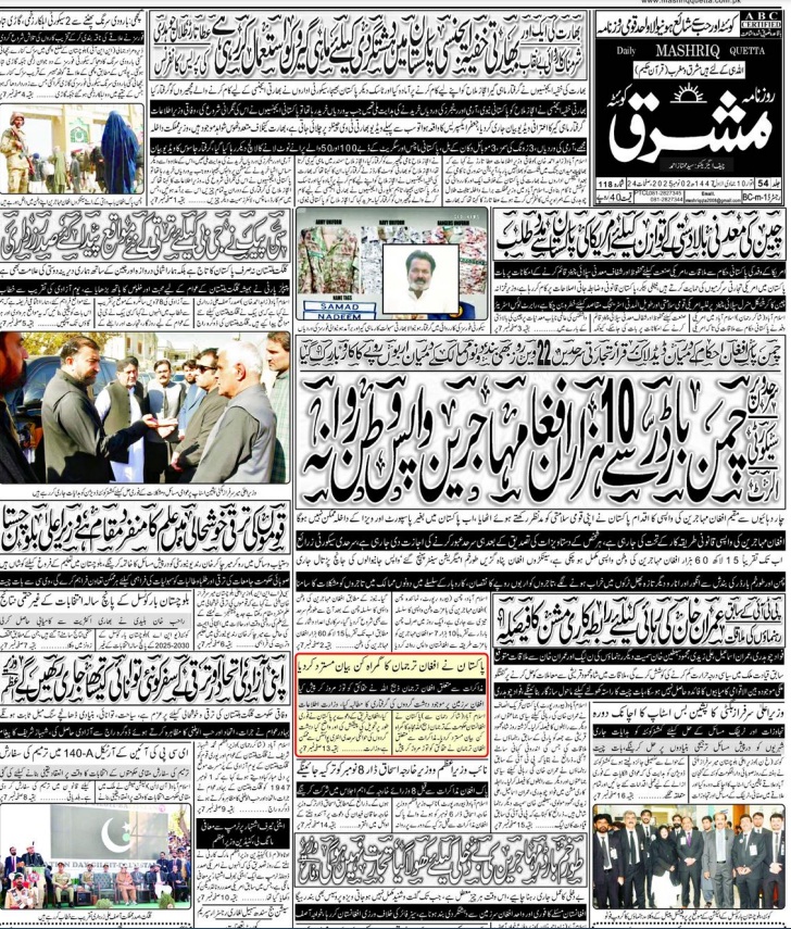 Daily Mashriq Quetta. 02-11-2025 On نومبر 2, 2025 Share Mashriq 02 Novamber 2025 Share FacebookTwitterGoogle+ReddItWhatsAppPinterestEmail