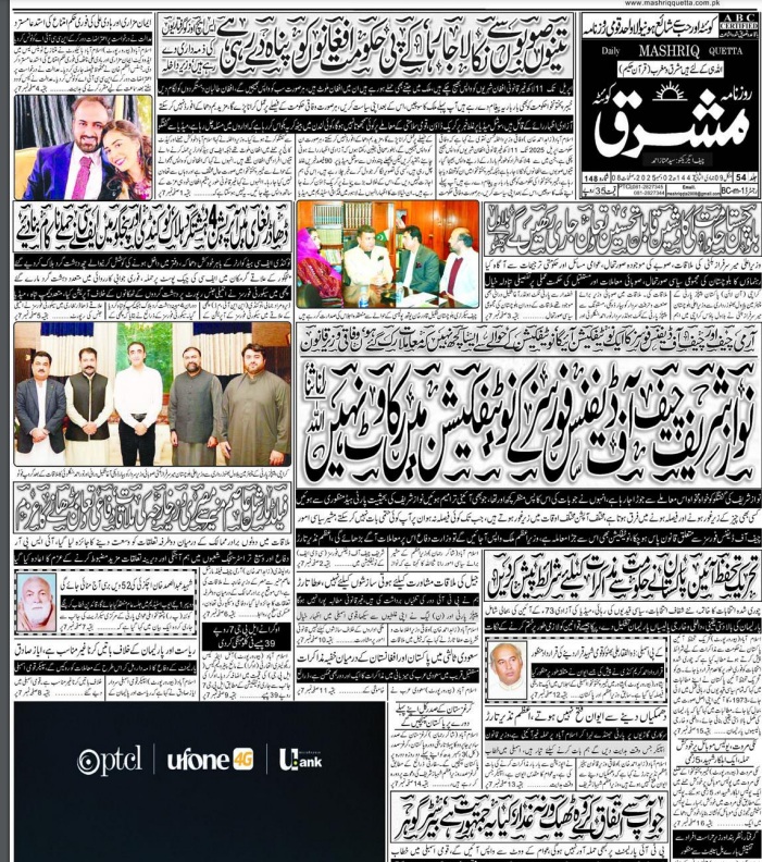 Daily Mashriq Quetta. 01-12-2025 On دسمبر 2, 2025 Share Mashriq 02 December 2025 Share FacebookTwitterGoogle+ReddItWhatsAppPinterestEmail