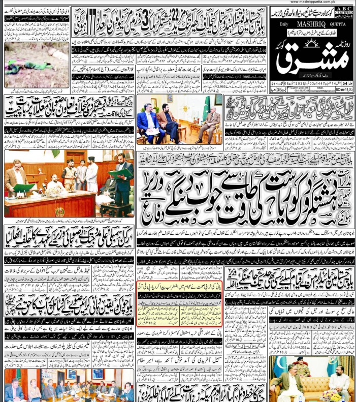 Daily Mashriq Quetta. 03-02-2026 – Daily Mashriq Newspaper Quetta