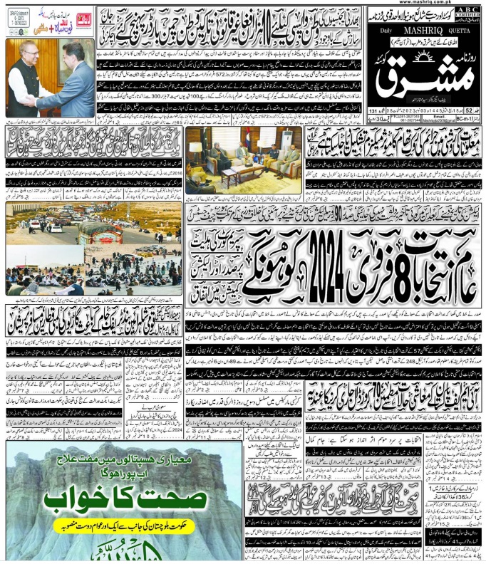 Daily Mashriq Quetta. 03-11-2023 – Daily Mashriq Newspaper Quetta