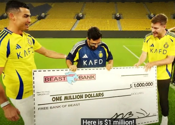 مسٹر بیسٹ کے یوٹیوب چینل پر النصر کے اسٹرائیکر کرسٹیانو رونالڈو نے ایک مداح کے ساتھ 1 ملین ڈالر انعام کےلیے ایک چیلنج قبول کیا تھا۔
