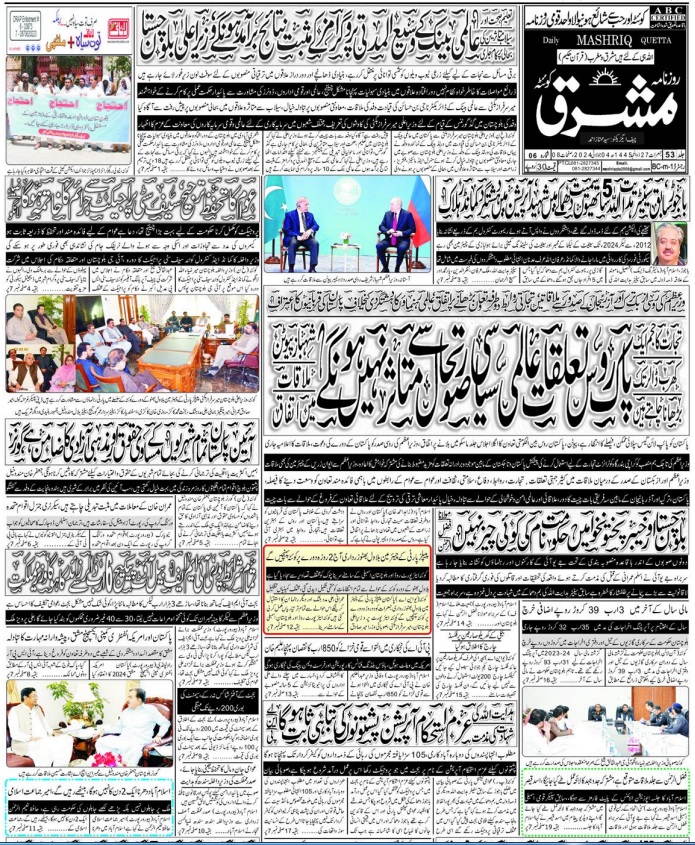 Daily Mashriq Quetta. 04-07-2024 On جولائی 4, 2024 Share Mashriq 04 Share FacebookTwitterGoogle+ReddItWhatsAppPinterestEmail