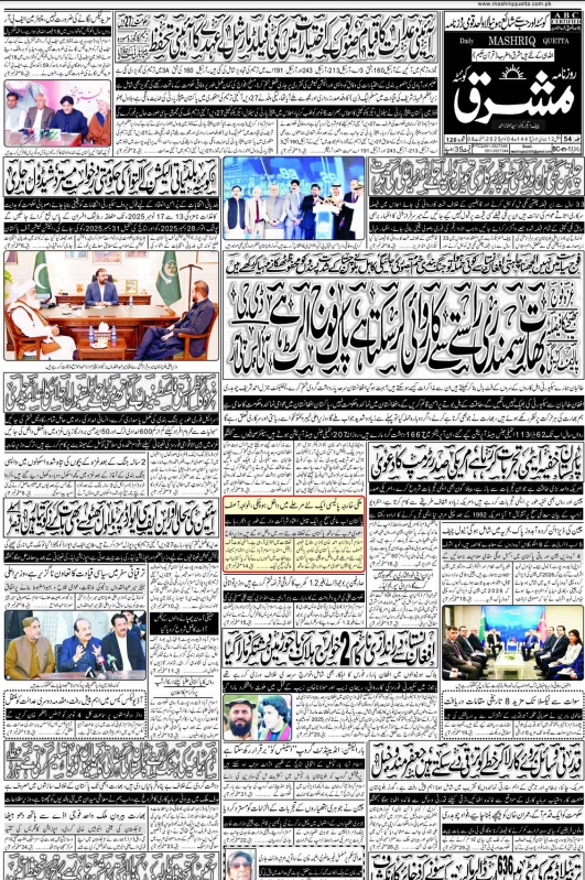 Daily Mashriq Quetta. 04-11-2025 – Daily Mashriq Newspaper Quetta