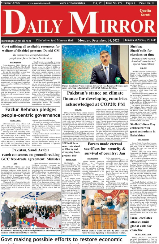 Daily Mirror Quetta. On دسمبر 4, 2023 Share Daily Mirror Quetta Share FacebookTwitterGoogle+ReddItWhatsAppPinterestEmail