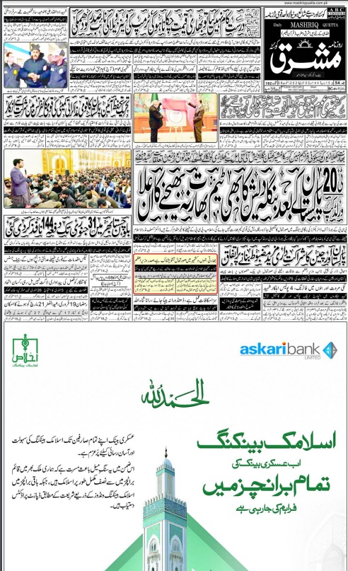 Daily Mashriq Quetta. 05-01-2025 On جنوری 5, 2026 Share Mashriq 05 Januray 2026 Share FacebookTwitterGoogle+ReddItWhatsAppPinterestEmail
