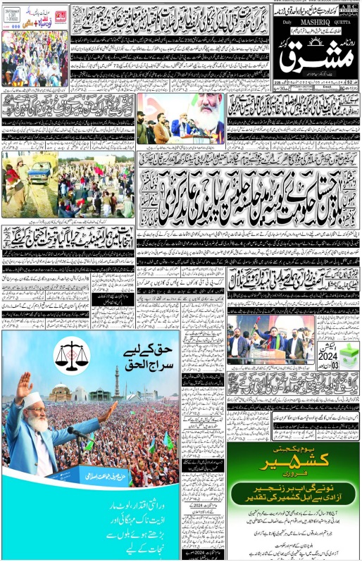 Daily Mashriq Quetta. 05-02-2024 On فروری 5, 2024 Share Mashriq 05 Share FacebookTwitterGoogle+ReddItWhatsAppPinterestEmail