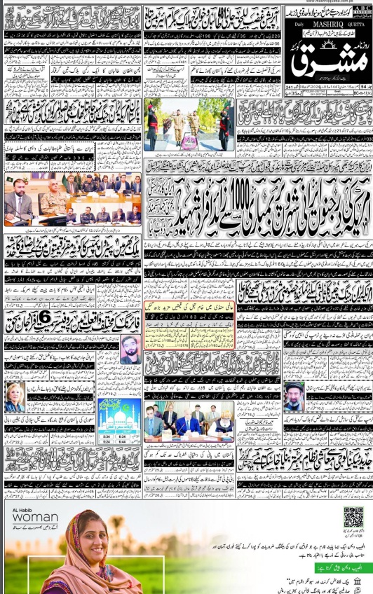 Daily Mashriq Quetta. 05-03-2026 On مارچ 5, 2026 Share Mashriq 05 March 2026 Share FacebookTwitterGoogle+ReddItWhatsAppPinterestEmail