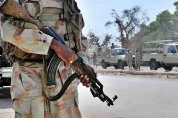 لیویز حکام کے مطابق گاڑی سے ایل ایم جی، 600 گولیاں اور 8 بیرل برآمد ہوئے۔