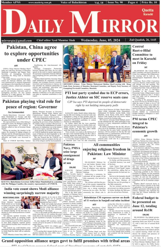 Daily Mirror Quetta. 06-05-2024 On جون 5, 2024 Share Daily Mirror Quett Share FacebookTwitterGoogle+ReddItWhatsAppPinterestEmail