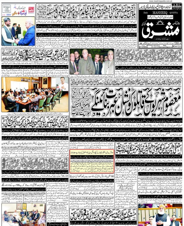 Daily Mashriq Quetta. 05-09-2024 Last updated ستمبر 5, 2024 Share Mashriq 05 Share FacebookTwitterGoogle+ReddItWhatsAppPinterestEmail