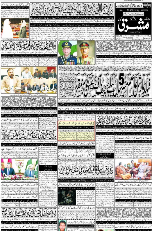 Daily Mashriq Quetta. 05-12-2025 On دسمبر 5, 2025 Share Mashriq 05 December 2025 Share FacebookTwitterGoogle+ReddItWhatsAppPinterestEmail