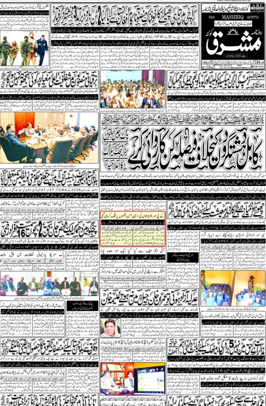 Daily Mashriq Quetta. 06-01-2026 On جنوری 6, 2026 Share Mashriq 06 Januray 2026 Share FacebookTwitterGoogle+ReddItWhatsAppPinterestEmail