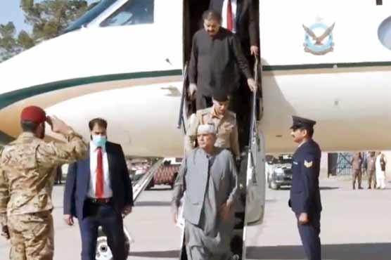 گورنر شیخ جعفر مندوخیل، وزیراعلیٰ سرفراز بگٹی، صوبائی وزراء اور پارٹی رہنماؤں نے صدر مملکت کا استقبال کیا۔