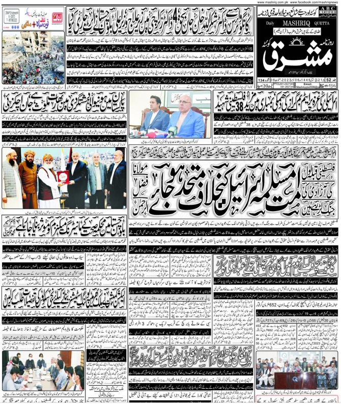 Daily Mashriq Quetta. 06-11-2023 On نومبر 6, 2023 Share Mashriq 06 Share FacebookTwitterGoogle+ReddItWhatsAppPinterestEmail
