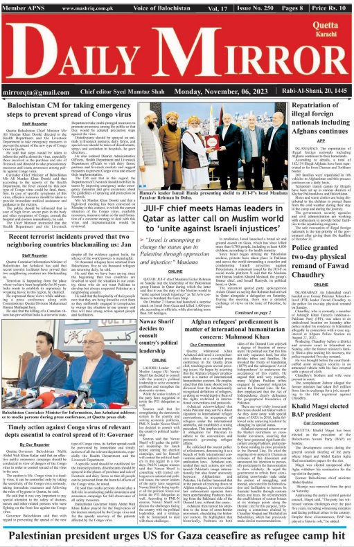 Daily Mirror Quetta. 06-11-2023 Last updated نومبر 6, 2023 Share Daily Mirror Quett Share FacebookTwitterGoogle+ReddItWhatsAppPinterestEmail