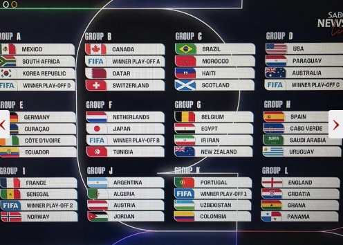 فیفا ورلڈکپ 2026 کے ڈراز کا اعلان کردیا گیا جس میں 48 ٹیموں کے 12 گروپس بنائے گئے ہیں، ہر گروپ میں 4 ٹیمیں ہوں گی ۔