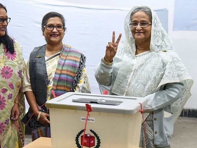 وزیر اعظم حسینہ واجد نے دارالحکومت ڈھاکا میں اپنا ووٹ کاسٹ کیا۔
