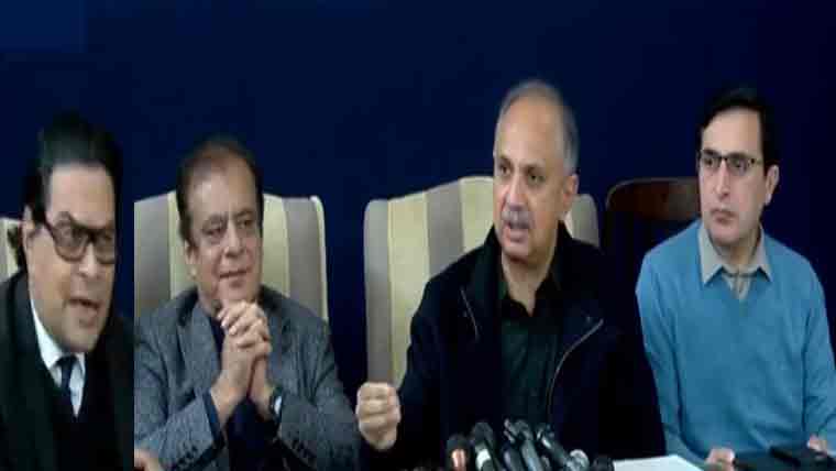 اسلام آباد میں عمرایوب، سلمان اکرم راجہ اور شبلی فرازکے ہمراہ بیرسٹر گوہر کا پریس کانفرنس کرتے ہوئے کہنا تھا کہ ہمارے دو نکات ہیں ، ایک 9 مئی اور 26نومبر واقعہ پر جوڈیشل کمیشن بنانا دوسرا بے گناہ کارکنوں کی رہائی ہے۔