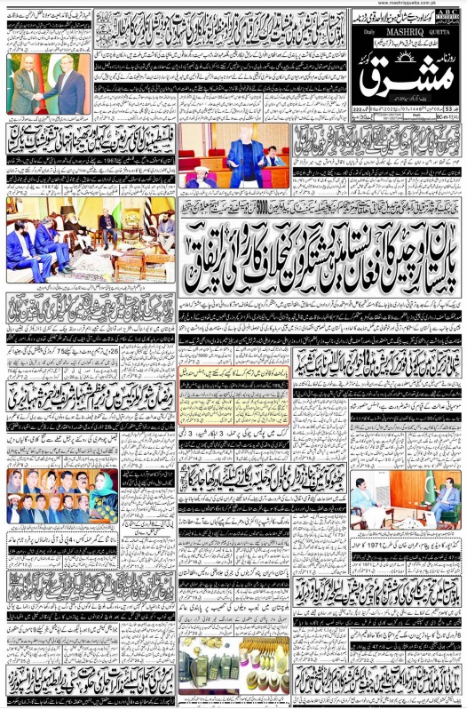 Daily Mashriq Quetta. 07-02-2025 – Daily Mashriq Newspaper Quetta