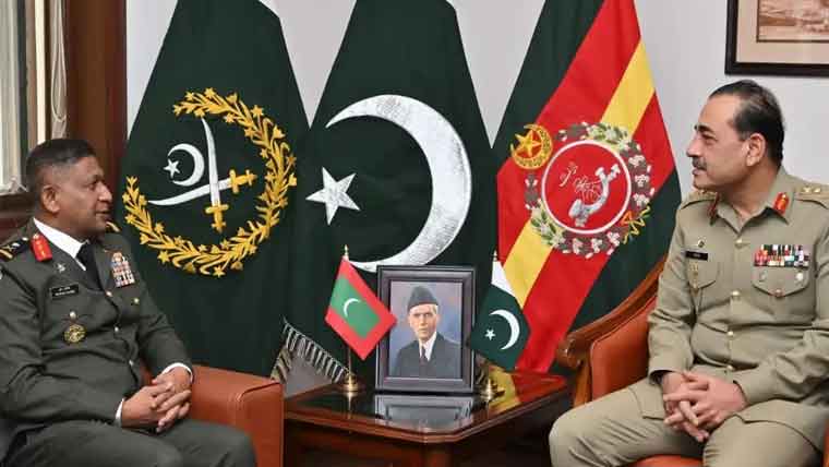 آئی ایس پی آر کے مطابق آرمی چیف عاصم منیر اورمیجر جنرل ابراہیم ہلمی نے دونوں اطراف سے پاکستان اور مالدیپ کے درمیان بھائی چارے اور دوستی کے پائیدار بندھنوں پر اطمینان کا اظہار کیا جبکہ دونوں نے اہم علاقائی امور پر اپنے مشترکہ نقطہ نظر پر زور دیا اورباہمی تعاون کو مزید وسعت دینے کا اعادہ کیا گیا۔