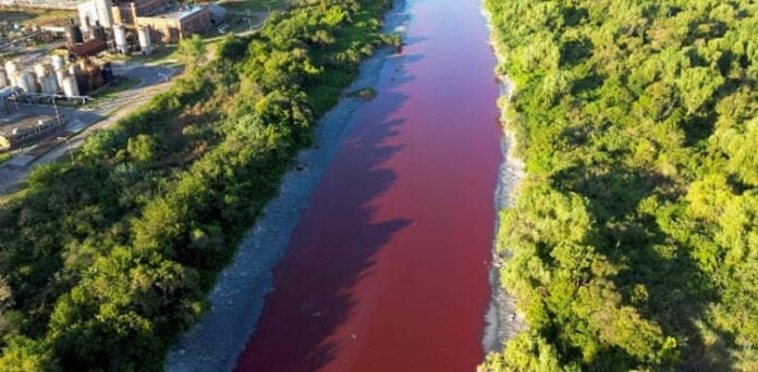 غیرملکی خبررساں ادارے کی رپورٹ کے طابق بیونس آئرس کے مضافات میں بہنے والی ایک نہر کا پانی اچانک سرخ ہونے سے مقامی لوگ خوفزدہ ہوگئے۔