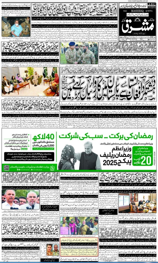 Daily Mashriq Quetta. 07-03-2025 On مارچ 7, 2025 Share Daily Mashriq 07 March 2025 Share FacebookTwitterGoogle+ReddItWhatsAppPinterestEmail