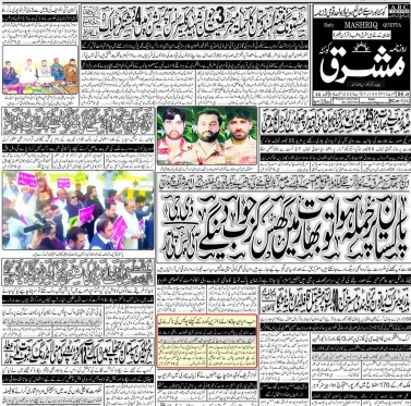 Daily Mashriq Quetta . 07-08-2025 On اگست 7, 2025 Share Mashriq 07th August 2025 Share FacebookTwitterGoogle+ReddItWhatsAppPinterestEmail