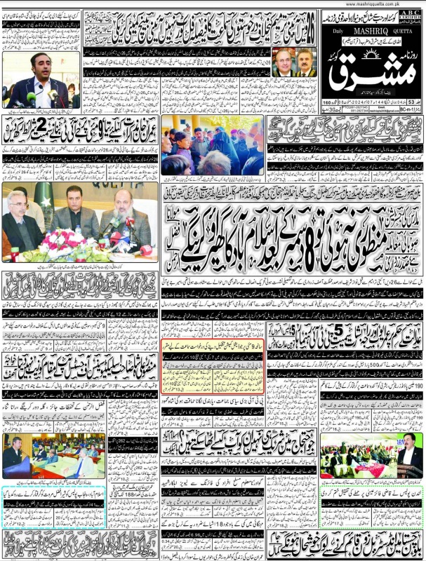 Daily Mashriq Quetta. 07-12-2024 – Daily Mashriq Newspaper Quetta