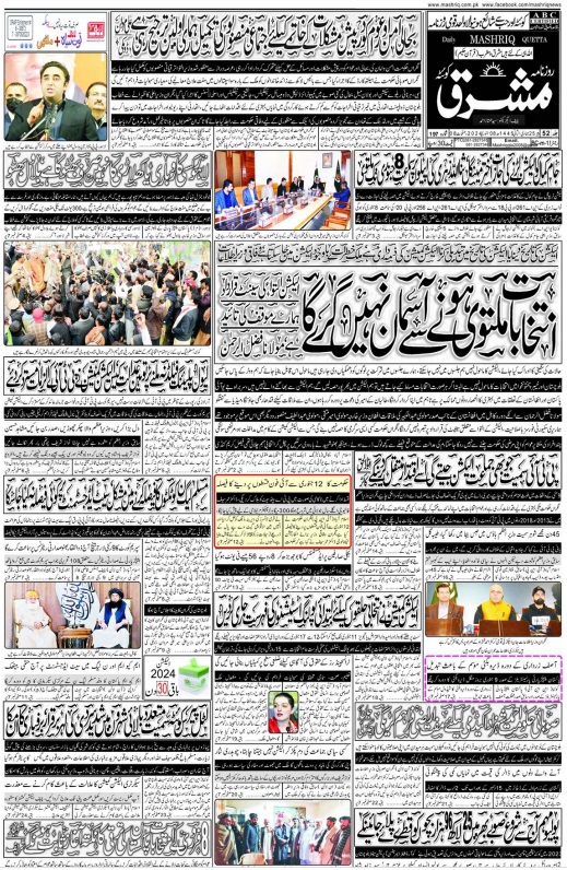 Daily Mashriq Quetta. 08-01-2024 – Daily Mashriq Newspaper Quetta