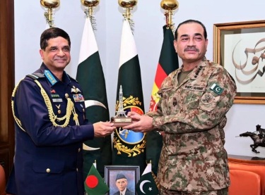 فیلڈ مارشل عاصم منیر سے بنگلہ دیش کے ایئرچیف مارشل حسن محمود خان نے ملاقات کی جہاں دونوں ممالک کےدرمیان دفاعی تعلقات کے فروغ کے عزم کا اعادہ کیا گیا۔