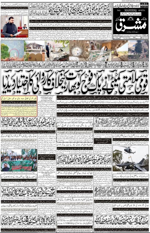 Daily Mashriq Quetta. 08-05-2025 On مئی 8, 2025 Share Mashriq 08D Share FacebookTwitterGoogle+ReddItWhatsAppPinterestEmail