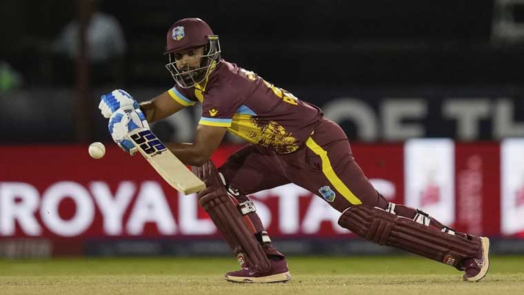 اوپنرز برینڈن کنگ اور جونسن چارلس نے محتاط انداز میں بیٹنگ کا آغاز کیا اور میچ کے 5 ویں اوور میں میزبان ٹیم کی پہلی وکٹ 41 رنز پر گر گئی، برینڈن کنگ صرف 13 رنز ہی بنا سکے، جانسن چارلس 44، آندے رسل 30 رنز کے ساتھ نمایاں رہے، رومن پاول نے 23، نکولس پورن اور شرفین رتھرفورڈ نے 22، 22 سکور کیے، ویسٹ انڈیز کی ٹیم 20 اوورز میں5 وکٹوں کے نقصان پر 173 رنز بنا پائی۔