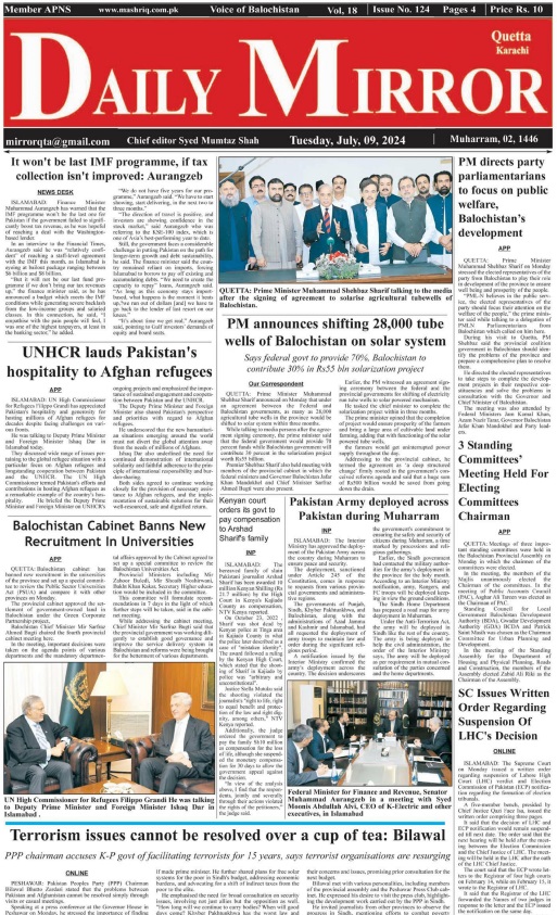 Daily Mirror Quetta. 09-07-2024 On جولائی 9, 2024 Share Daily Mirror Quetta Share FacebookTwitterGoogle+ReddItWhatsAppPinterestEmail