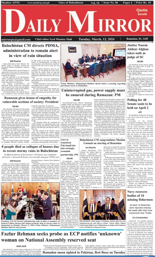 Daily Mirror Quetta. 12-03-2024 Last updated مارچ 11, 2024 Share Daily Mirror Quetta (1) Share FacebookTwitterGoogle+ReddItWhatsAppPinterestEmail