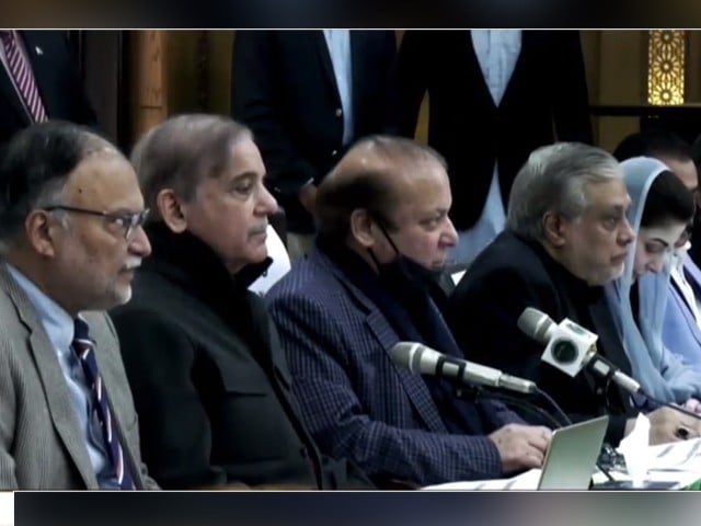 اجلاس کے بعد خطاب کرتے ہوئے نواز شریف نے کہا کہ دنیا بہت آگے چلی گئی اور ہمارا ملک بہت پیچھے چلا گیا ہمیں اس بات کا ادراک ہونا چاہیے، اللہ تعالیٰ پاکستان کی حفاظت فرمائے۔