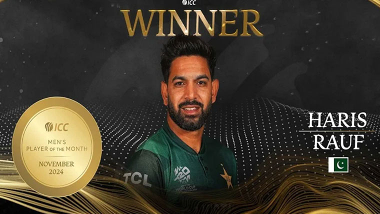 حارث رؤف کو نومبر کی کارکردگی کی بنیاد پلیئر آف دی منتھ قرار دیا گیا ہے۔