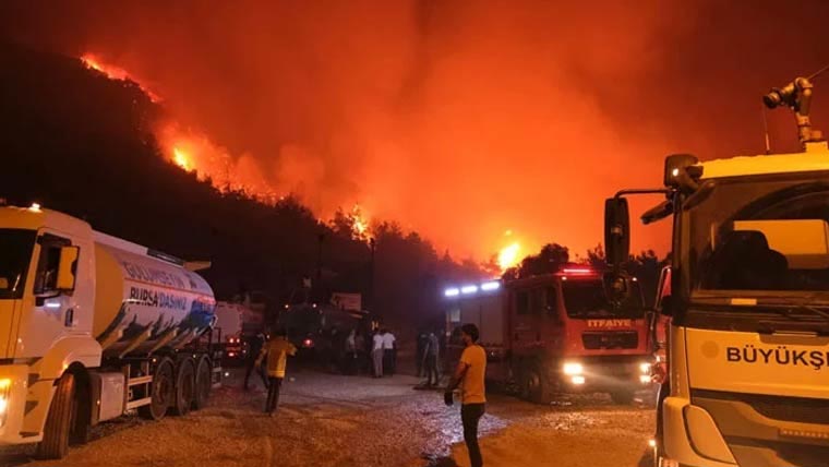 ترکیہ کے شمال مغربی صوبے چناق قلعہ (Canakkale) کے مرکزی علاقے میں خوفناک جنگلاتی آگ بھڑک اٹھی جو تیز ہواؤں کے باعث تیزی سے پھیل گئی۔