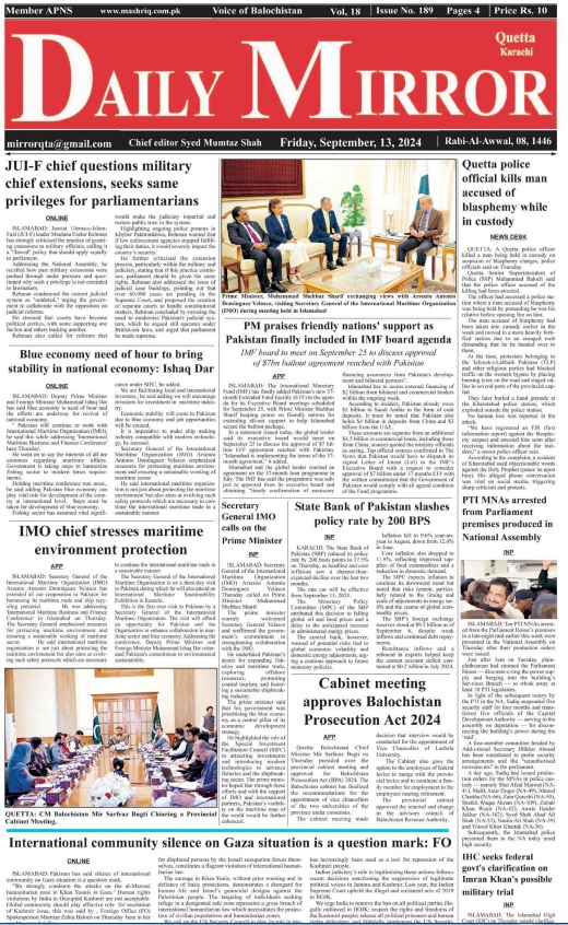 Daily Mirror Quetta. 13-09-2024 On ستمبر 12, 2024 Share Daily Mirror Quetta Share FacebookTwitterGoogle+ReddItWhatsAppPinterestEmail