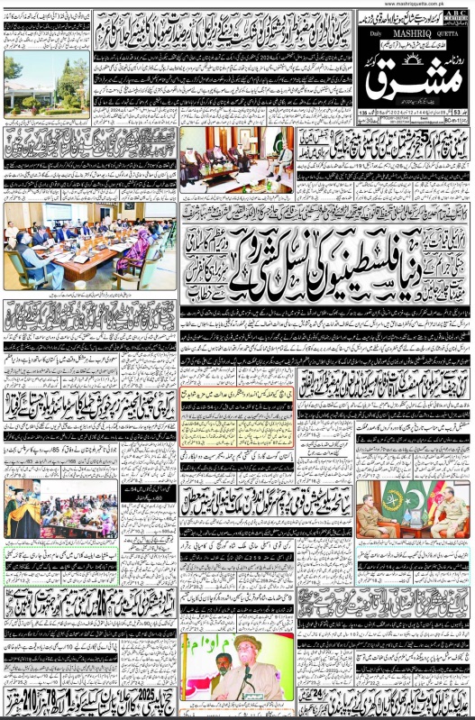 Daily Mashriq Quetta. 12-11-2024 – Daily Mashriq Newspaper Quetta