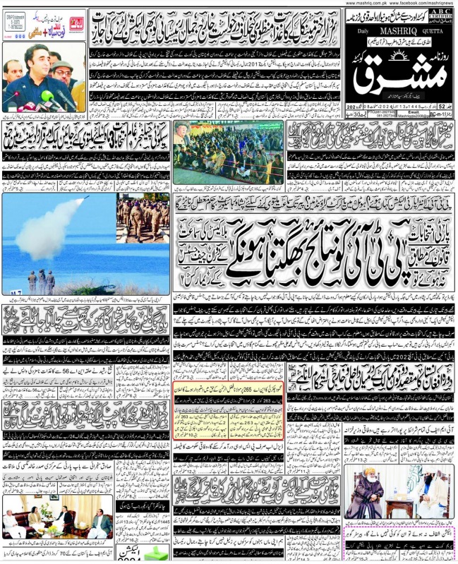 Daily Mashriq Quetta. 13-01-2024 – Daily Mashriq Newspaper Quetta