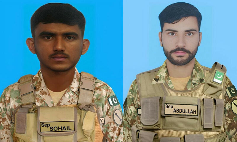 آئی ایس پی آر نے بتایا کہ دہشت گردوں کے ساتھ شدید فائرنگ کے تبادلے کے دوران مردان سے تعلق رکھنے والے 25 سالہ سپاہی عبداللہ اور تھرپارکر سے تعلق رکھنے والے 19 سالہ سپاہی محمد سہیل نے شہادت پائی۔