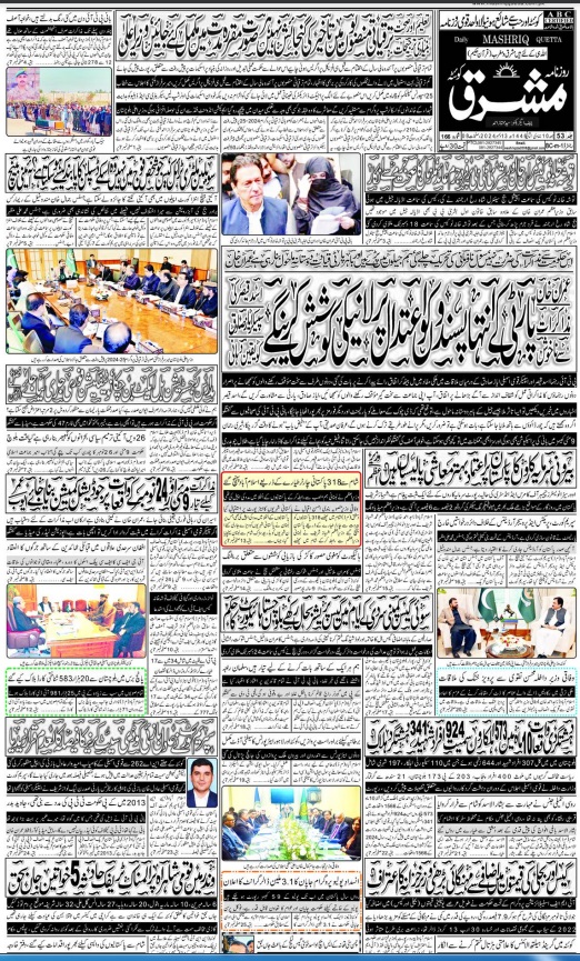 Daily Mashriq Quetta. 13-12-2024 On دسمبر 13, 2024 Share Mashriq 13 Share FacebookTwitterGoogle+ReddItWhatsAppPinterestEmail