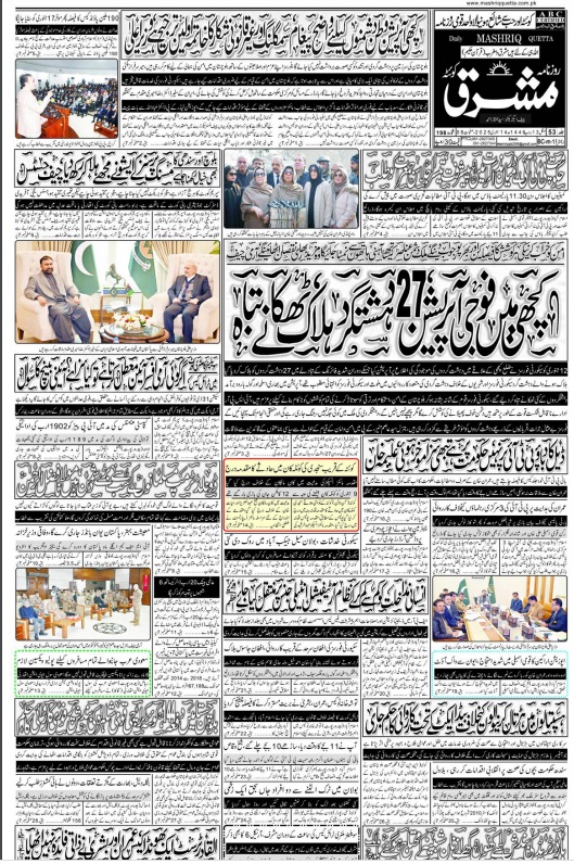 Daily Mashriq Quetta. 14-01-2025 – Daily Mashriq Newspaper Quetta