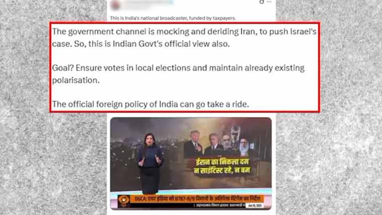 ایران پر اسرائیلی جارحیت کےبعد بھارتی سرکاری میڈیا ‘دور درشن’ نے فیک رپورٹنگ کے ذریعے اسرائیل کی تعریفیں شروع کر دیں۔