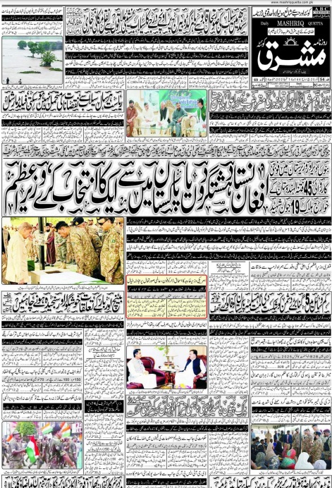 Daily Mashriq Quetta. 14-09-2025 On ستمبر 14, 2025 Share Mashriq 14th September 2025 Share FacebookTwitterGoogle+ReddItWhatsAppPinterestEmail
