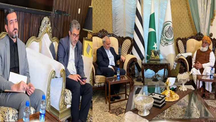 ایرانی سفیر رضا امیری مقدم کی قیادت میں اعلیٰ سطح کے وفد کی مولانا فضل الرحمان کی رہائش گاہ آمد ہوئی۔